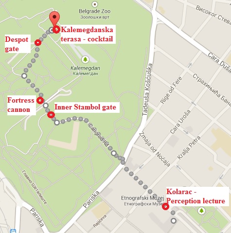 Following the Perception Lecture in Kolarac we will have an opening reception at the Belgrade fortress in restaurant Kalimegdanska terasa. It is a short walk away (less than 10 minutes) and you will be assisted by our volunteers. Those who are not prepared to walk through the Fortreess, now turned into a park, will be bussed to the location.
